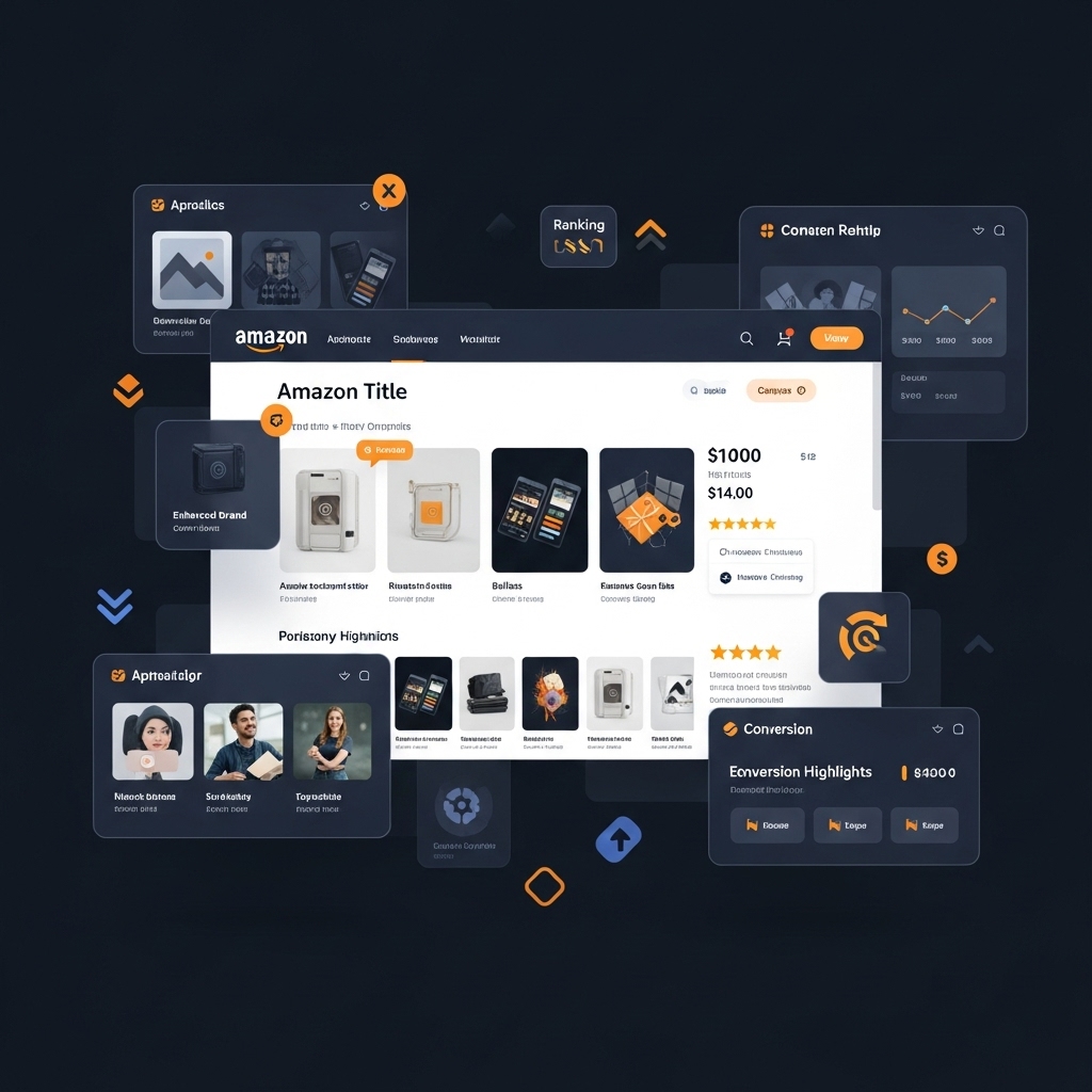 High-converting Amazon listings with optimized images, clear visuals, and layouts built to drive clicks and sales.